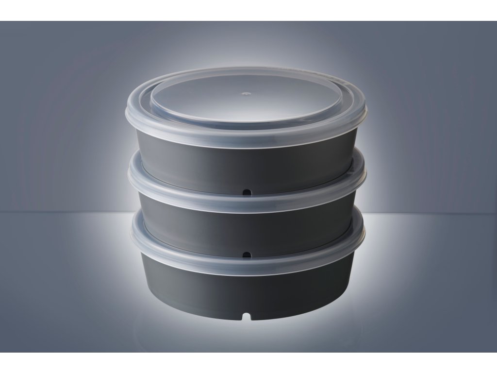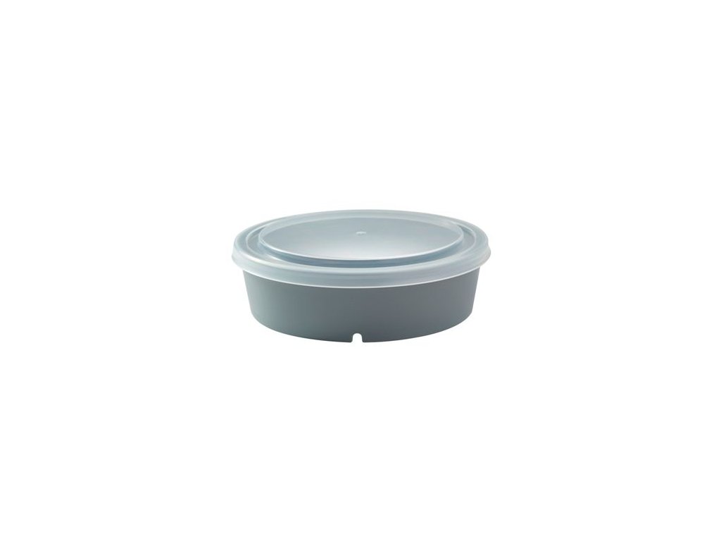 Plastová opakovatelně použitelná PP nádoba na potraviny,kulatá,tmavě šedá